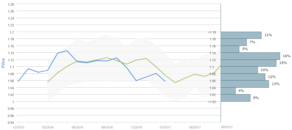 Traders, who were questioned on their longer-term views on EUR/USD between April 19 and today expect, on average, the currency pair to trade around 1.10 in August. In general, 54% (+1%) of participants believe the exchange rate will be above 1.10 in ninety days, and 39% see it above 1.12. In the meantime, finally none think that parity is an option.