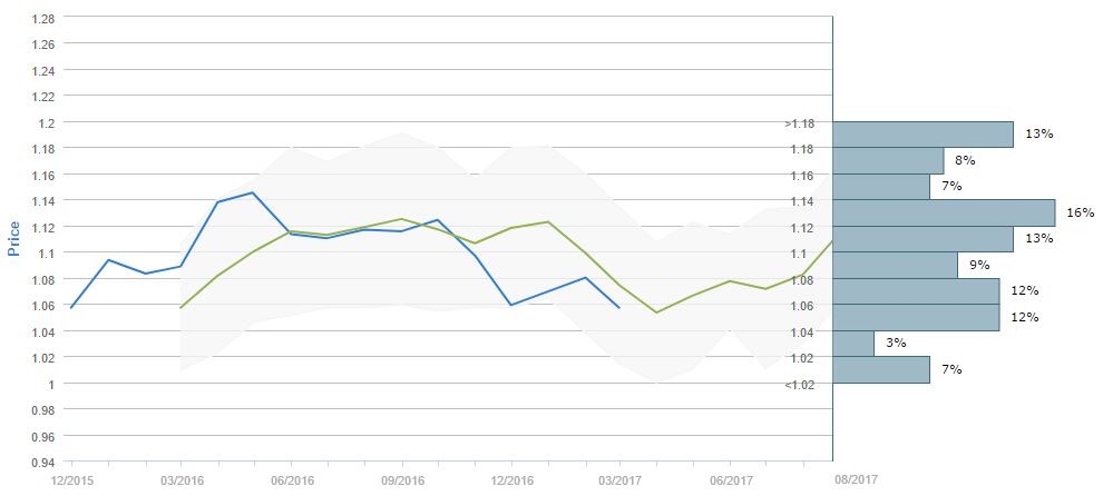 Traders, who were questioned on their longer-term views on EUR/USD between April 24 and today expect, on average, that the currency pair may trade slightly above 1.11 in late August. In general, 57% of participants believe the exchange rate will be above 1.10 in the following ninety days, and 44% see it above 1.12.