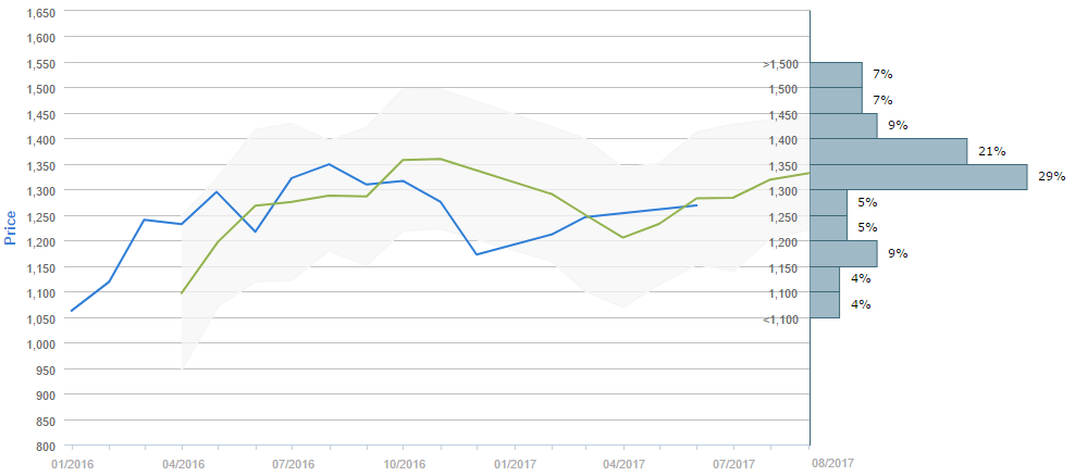 Market participants foresee the price of gold being near 1,350 in September