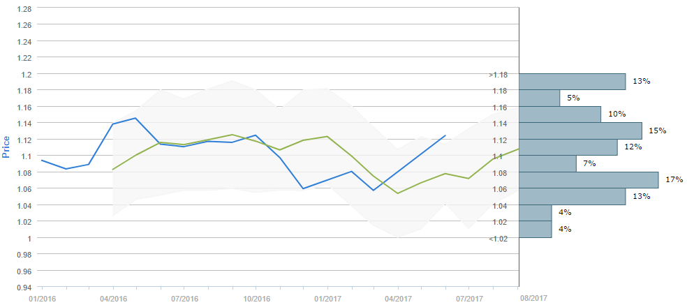Average forecast says EUR/USD will trade around 1.11 at the start of September