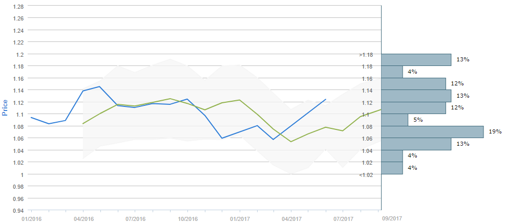 Average forecast says EUR/USD will trade around 1.11 at the start of September