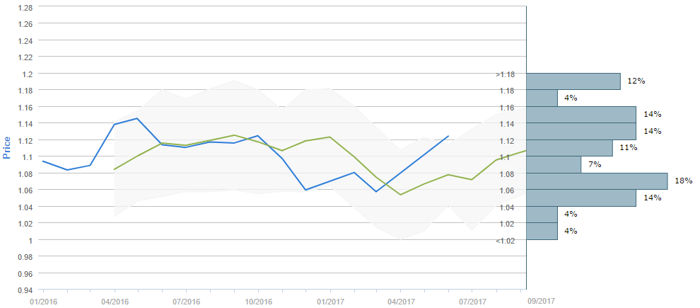 Traders, who were questioned on their longer-term views on EUR/USD between May 7 and June 7 expect, on average, that the currency pair may trade slightly below 1.11 during the first week of September. In general, 44% (-2%) of participants believe the exchange rate will be above 1.12 in the following ninety days. Meanwhile, 47% (+3%) of respondents expect to see the rate below 1.10.