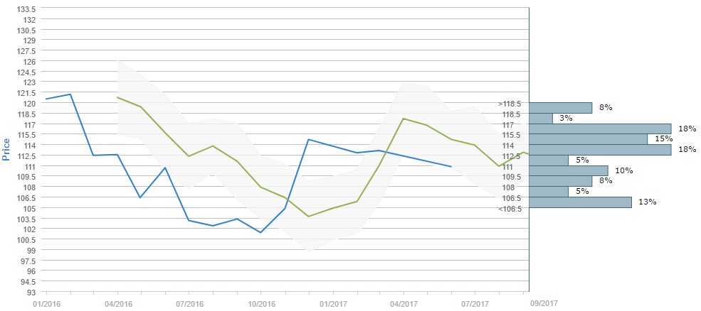 At the moment, 61% of OANDA clients are long the US Dollar against the Yen, while the remaining 39% are short. In addition, Saxo Bank clients' sentiment slightly improved over the weekend, as 62% of their open positions are now long.
