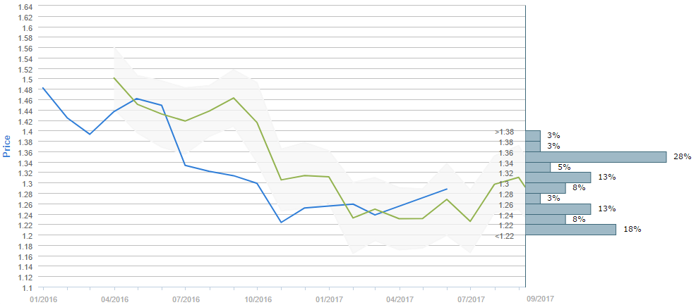 Traders believe the Cable is to rise above the 1.30 major level by the end of the next three months, as 52% of survey participants share this belief. While the current price is around 1.29, the average forecast for September 08 is 1.2915. The 1.34-1.36 range is now the most popular price interval, having 28% of the votes, while on the second place is the 1.20-1.22 interval, with 18% of the voters choosing it.