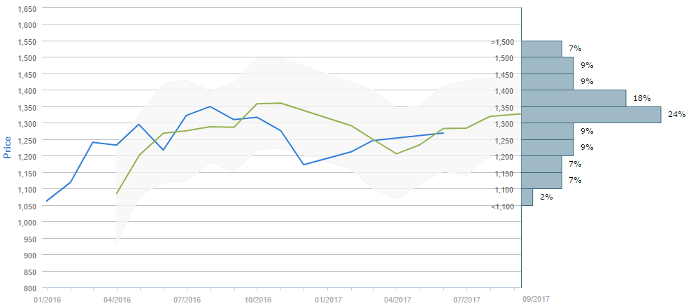 Traders who were asked regarding their longer-term views on gold between May 9 and June 9 expect, on average, to see the metal just below 1,350 in September. Generally, 43% (-1%) of participants believe the price will be above 1,350 in ninety days. Meanwhile, there are those, who expect the price to be below 1,300. Namely, 34% of respondents believe that the price will be below the mentioned mark.