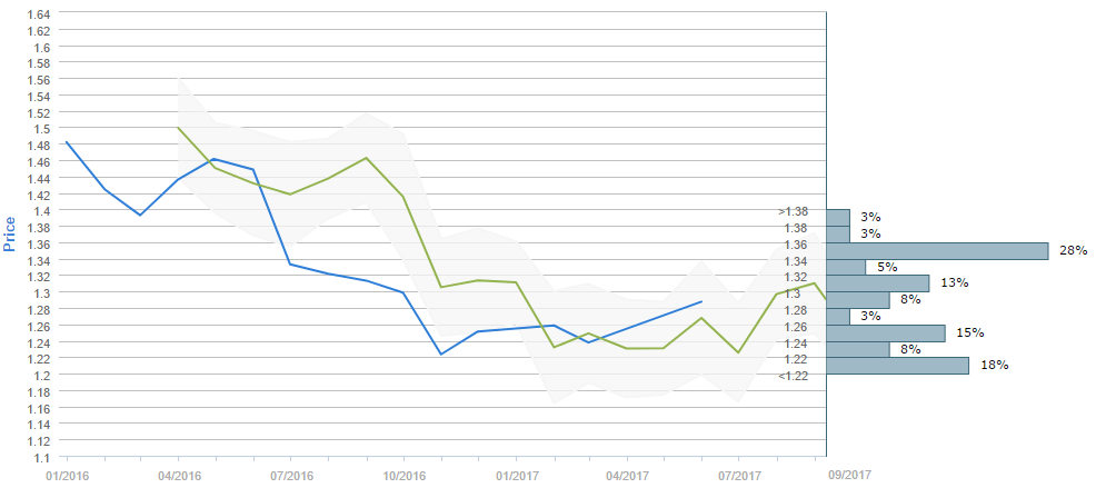Traders believe the Cable is to rise above the 1.30 major level by the end of the next three months, as 52% of survey participants share this belief. While the current price is around 1.29, the average forecast for September 09 is 1.2905. The 1.34-1.36 range is now the most popular price interval, having 28% of the votes, while on the second place is the 1.20-1.22 interval, with 18% of the voters choosing it.