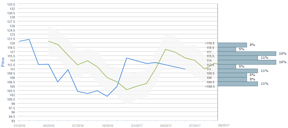 At the moment, 63% of OANDA clients are long the US Dollar against the Yen, while the remaining 37% are short. In addition, Saxo Bank clients' sentiment slightly worsened over the day, as 60% of their open positions are now long.