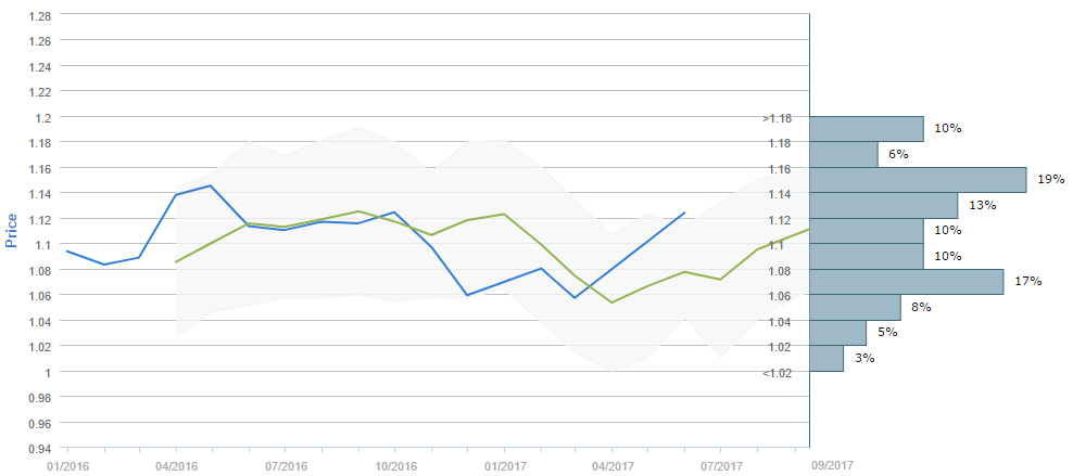 Traders, who were questioned on their longer-term views on EUR/USD between May 12 and June 12 expect, on average, that the currency pair may trade slightly above 1.11 during the first week of September. In general, 48% (+6%) of participants believe the exchange rate will be above 1.12 in the following ninety days. Meanwhile, 43% (-2%) of respondents expect to see the rate below 1.10.