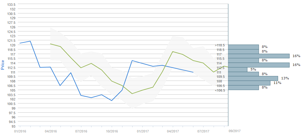 At the moment, 62% of OANDA clients are long the US Dollar against the Yen, while the remaining 38% are short. In addition, Saxo Bank clients' sentiment slightly worsened over the day, as 64% of their open positions are now long.