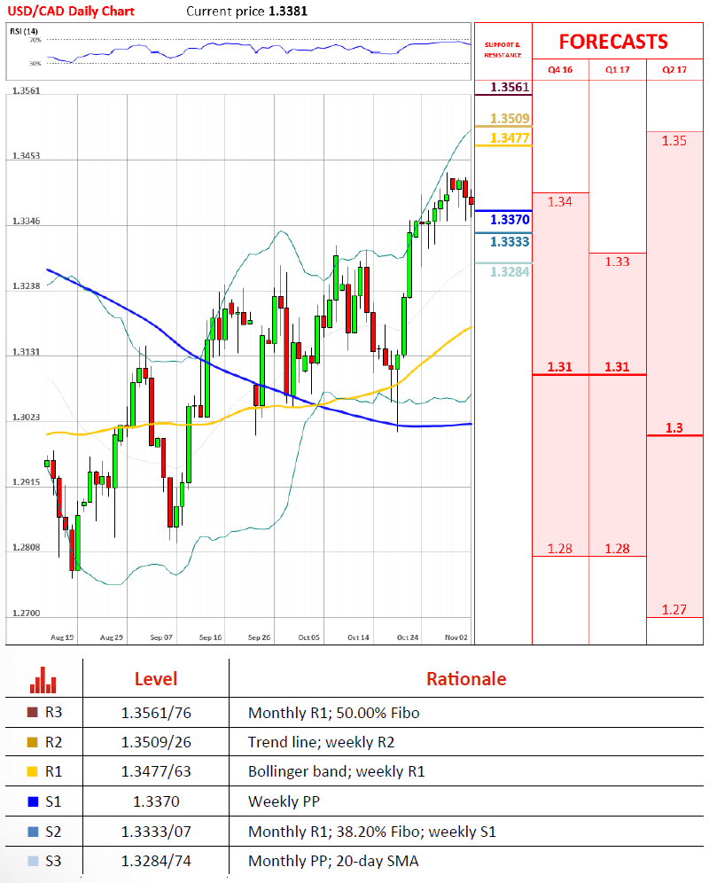 The US Dollar continued to depreciate against the Canadian Dollar, as the US politics continued to weaken the Greenback. By mid-day on Wednesday the currency exchange rate had reached below the weekly pivot point, which is located at 1.3370. In the upcoming weeks politics are set to play a much larger role in the market than the fundamental economic data or technical analysis. However, it has to be noted that daily aggregate technical indicators forecast a surge of the pair by the end of the day.