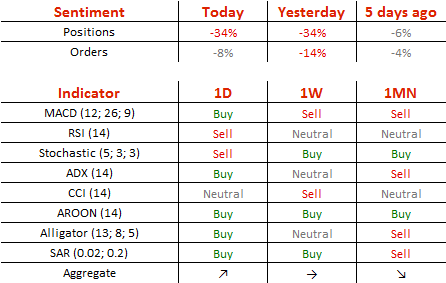 There are still 67% of traders being short the Buck, while 54% of all pending orders are to sell the US Dollar, compared to 57% on Tuesday.