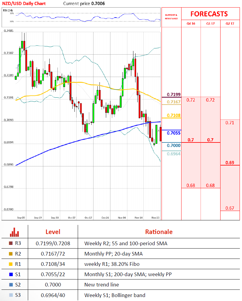 The New Zealand Dollar retreated by mid-Wednesday against the US Dollar, as the currency exchange rate fell and traded just above the 200-day SMA. During the previous session the simple moving average provided enough support for the rate to bounce back up to almost the opening price, as it was falling prior to that. It is most likely that it will occur once more on Wednesday. However, close by is also located the weekly PP at 0.7055, which might hinder the surge. Although, by looking at the daily chart, it can be seen that the pivot point is being ignored by the pair.