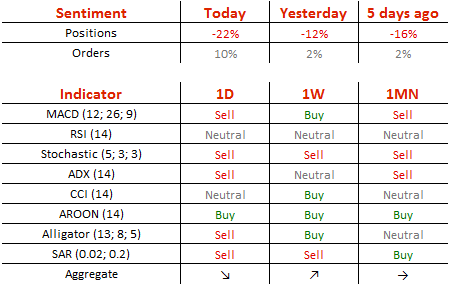 Traders have increased their bearish outlook, as 61% of open positions were short on Wednesday. Meanwhile, trader set up orders were no longer neutral, as 55% of pending commands were to buy the Kiwi.