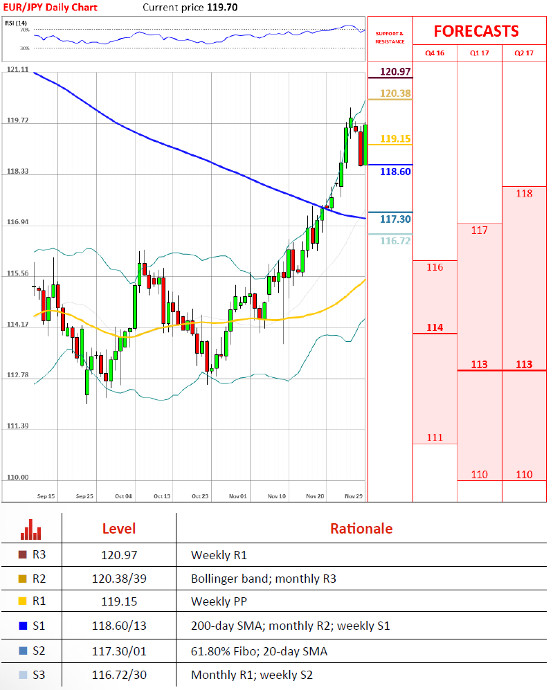 Even though the Euro began the week with a decline, the 200-day SMA is providing strong support and is expected to trigger a rebound today. Moreover, the given SMA is also reinforced by the monthly R2 and the weekly S1, making the possibility of the bearish momentum taking over highly unlikely. Meanwhile, the weekly pivot point represents immediate resistance, but is of little significance in this case, thus, the main target is the cluster around 120.39, assuming a surge beyond 120.00 is successful. Technical indicators are in favour of the positive outcome, as they retain bullish signals in the short-term.