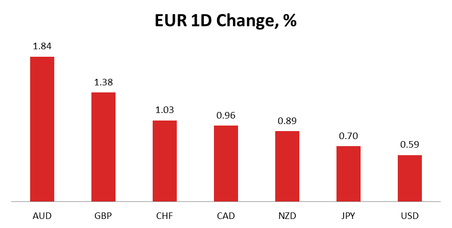 On Wednesday the Euro skyrocketed versus all major currencies after three days of losses or sluggish growth. Positive changes were in place due to comments from the ECB President Mario Draghi. Analysts suggest he used less dovish language when testifying in the European Parliament yesterday. A Euro-bullish influence was quite clear: EUR/AUD climbed by 1.8% and EUR/GBP added 1.4%. The threshold of 1% was also unexpectedly surpassed by the EUR/CHF cross, which is usually considered to be a low-volatility cross.