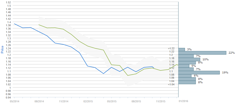 Average forecast says EUR/USD will trade at 1.13 by January 2016