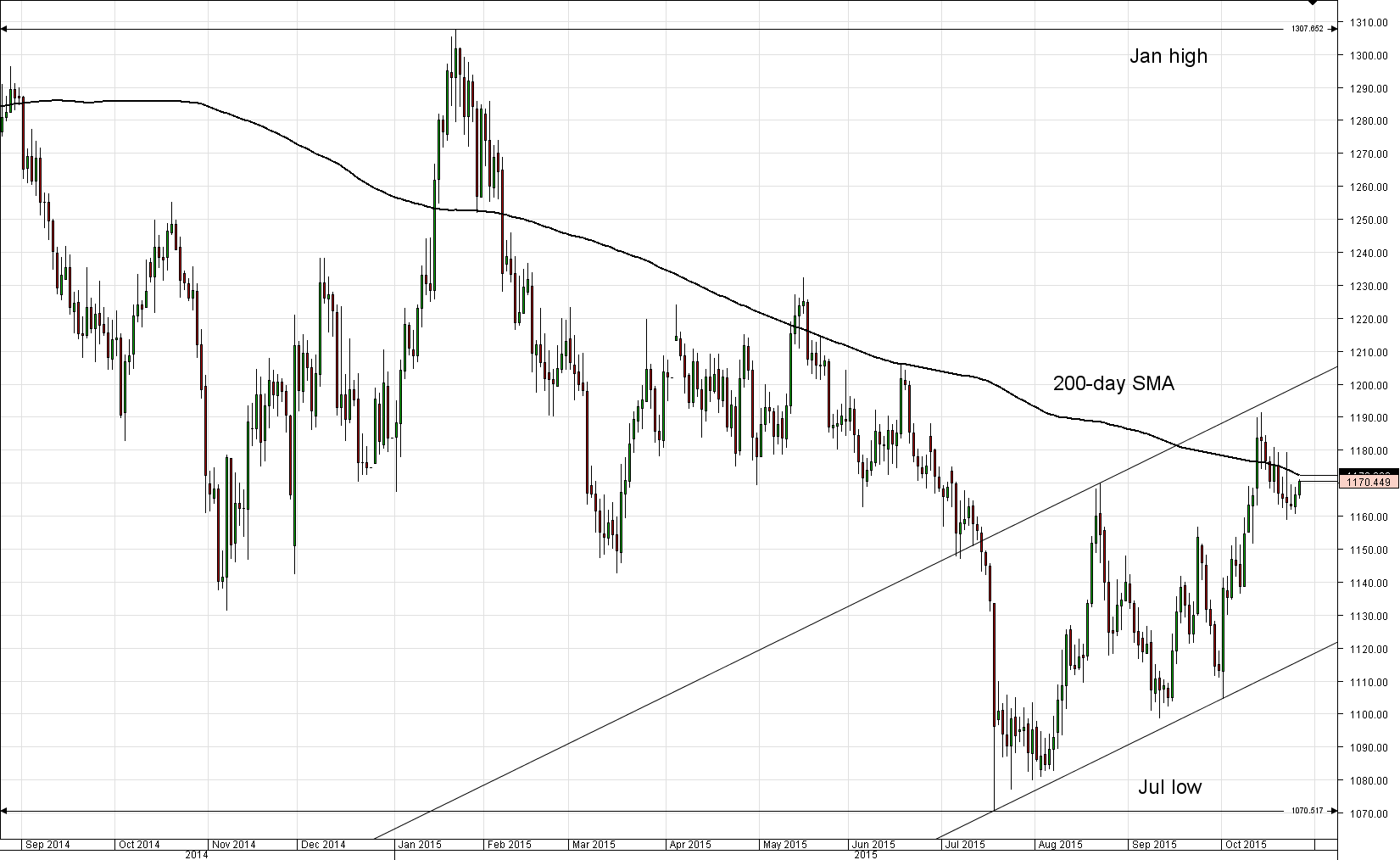 • 200-day SMA at 1,172 is the key target for bulls, followed by weekly R1 at 1,177