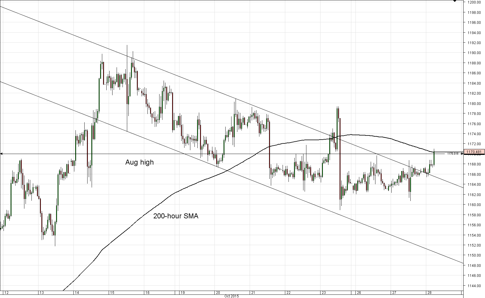Positive outlook for the bullion is supported by the one-hour chart, where the price is currently testing the 200-hour SMA at 1,170. This level is strengthened by the Aug high, meaning a success here may imply considerable future gains for gold.