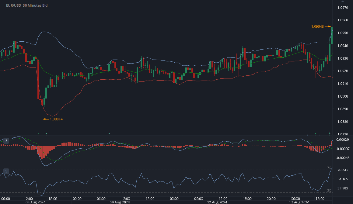 Let’s assume that there is a strong uptrend in the price of EUR/USD. In this scenario, it would be beneficial to capitalize on this uptrend while also having some indication of potential entry and exit points.