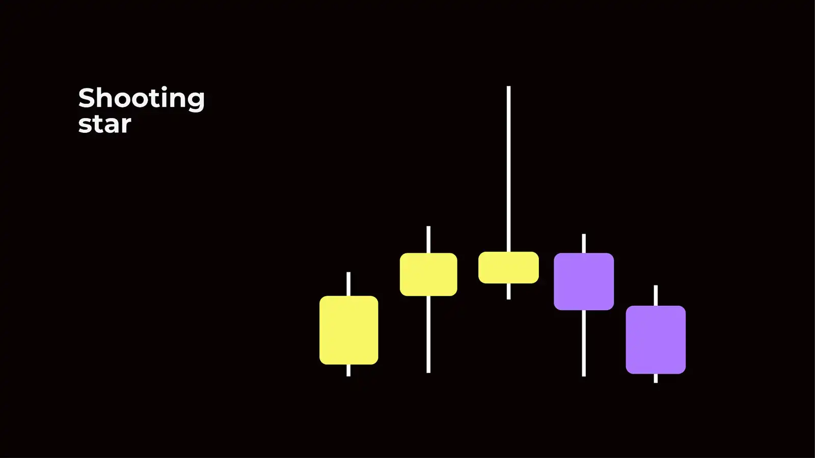 The Shooting Star is a powerful bearish reversal candlestick pattern that signals a potential trend change after an uptrend. It has a small body near the lower end of the candle, a long upper wick, and little to no lower wick. This shape tells traders that buyers initially pushed prices higher, but strong selling pressure forced the price to close near its opening level—suggesting that the uptrend may be losing strength.