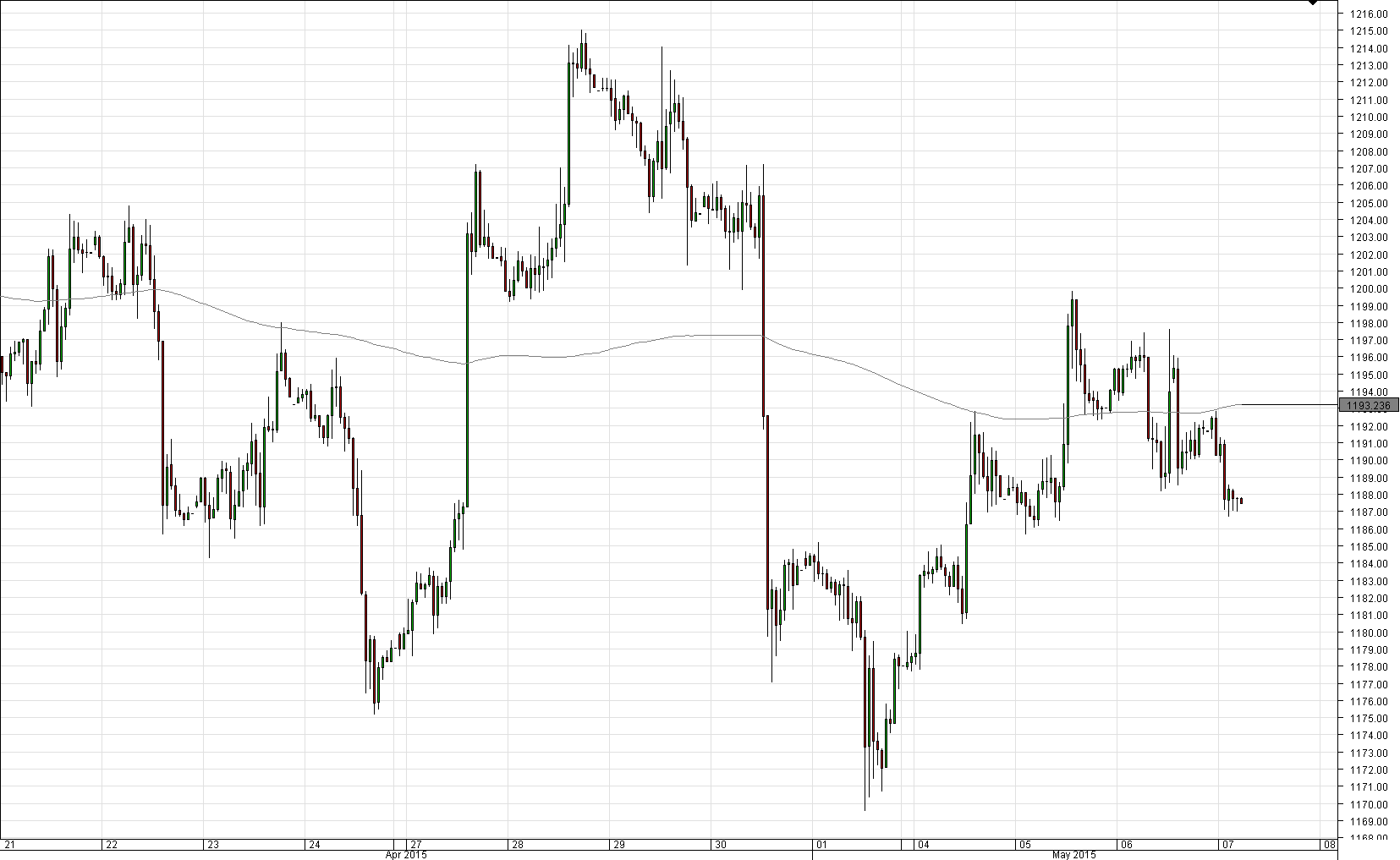 - The closest resistance for the yellow metal is currently located at 1,194