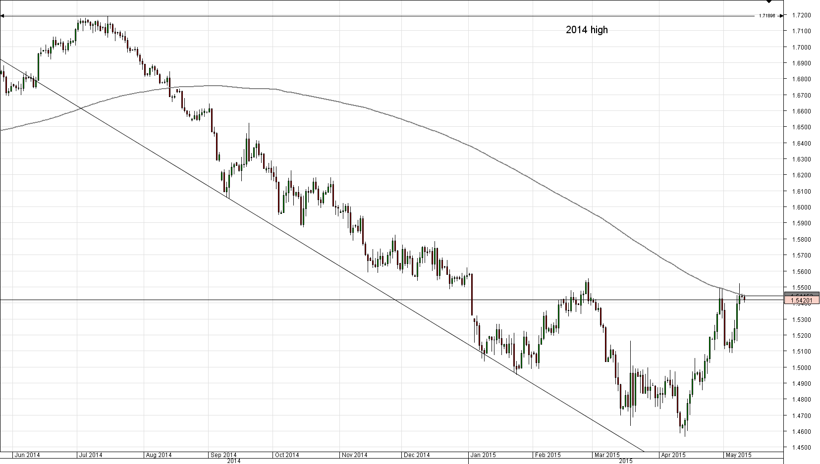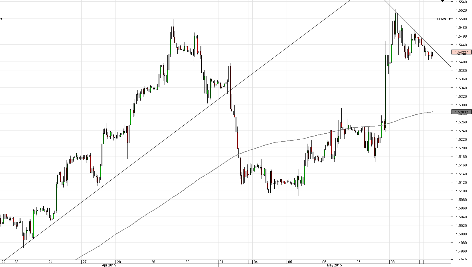 As the Cable reached a two-month high last Friday, it was unable to maintain its position and dropped down. Nevertheless, despite strong downside volatility, the 1.54 psychological level stopped the currency pair from falling deeper. However, the resistance trend-line is preventing the Sterling from appreciating, but a breach to the upside is expected in the middle of the day.
