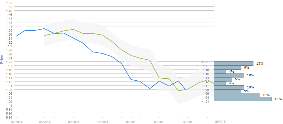 - Commands to buy the Euro versus the US Dollar in 100-pip range from the spot are strongly bearish (33% long / 67% short)