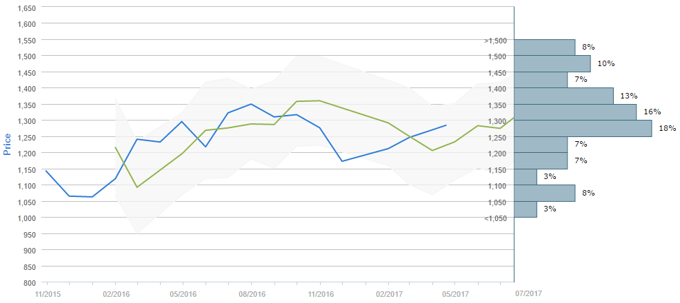 Traders who were asked regarding their longer-term views on gold between March 18 and April 18 expect, on average, to see the metal near 1,300 in July. Generally, 53% (+1%) of participants believe the price will be above 1,300 in ninety days. Alongside, 35% (-1%) of those surveyed reckon the currencies will trade in the range between 1,100 and 1,300 over the next three months.