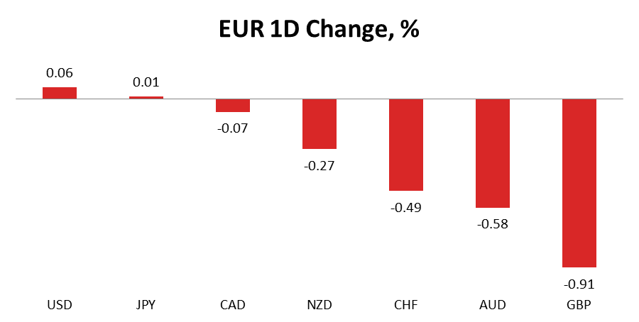 Despite disappointing data published yesterday in the UK, the Sterling even managed to rally 0.91% versus the single currency, showing the biggest change among all major crosses of the Euro. In the meantime, the only currency pairs to gain value were EUR/USD and EUR/JPY, even though increases were insignificant. The US Dollar was influenced by worse than estimated retail sales' numbers on Tuesday, while the Yen awaited a meeting of the Bank of Japan earlier this morning.