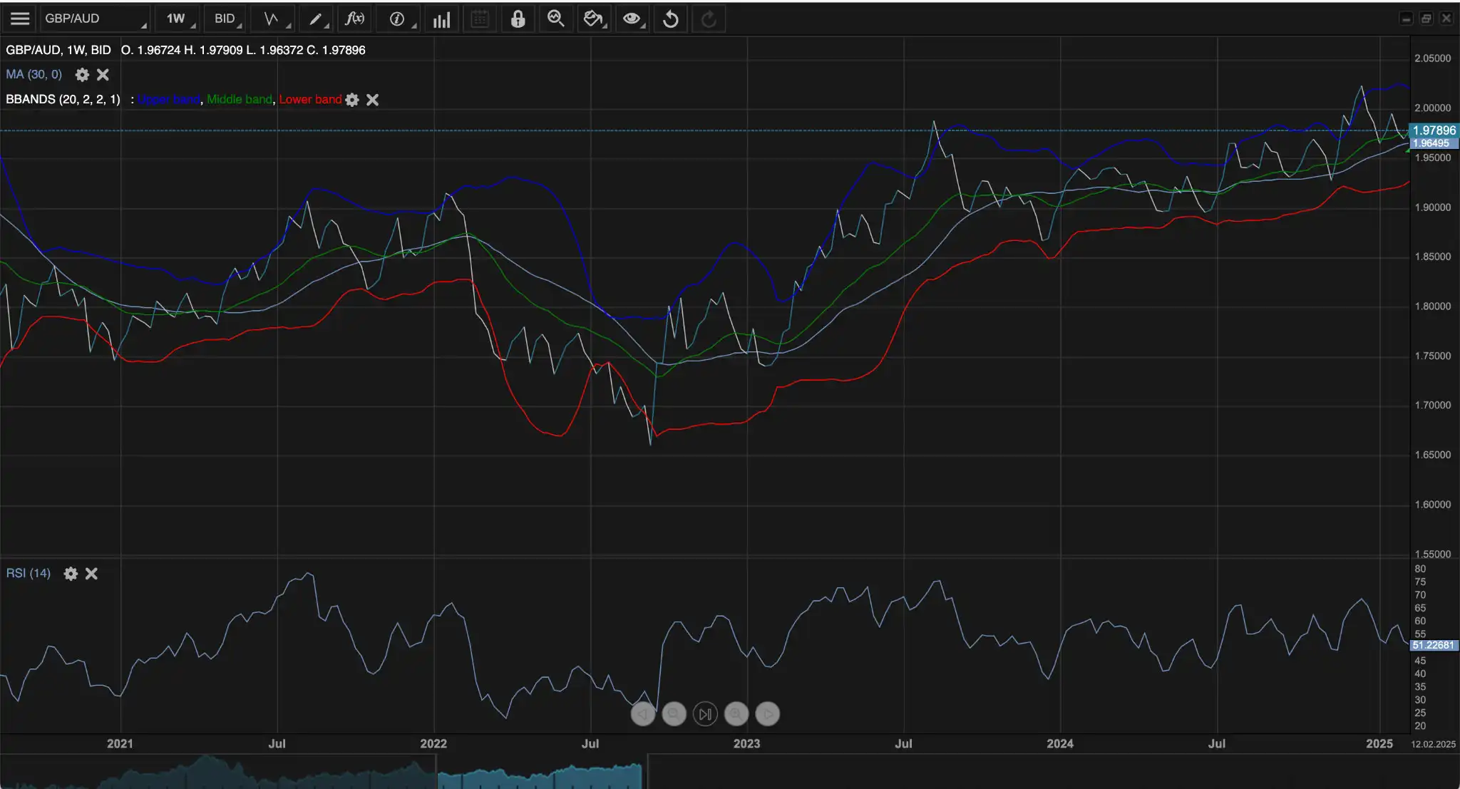 GBP/AUD often trades within a range before making sharp breakouts, typically triggered by interest rate decisions, inflation reports, or global risk sentiment shifts. Traders look for consolidations near support or resistance and enter positions once a breakout occurs, using stop-loss orders just outside the range to manage risk. Bollinger Bands are a useful tool in this approach, helping identify when price action is tightening before a potential breakout.