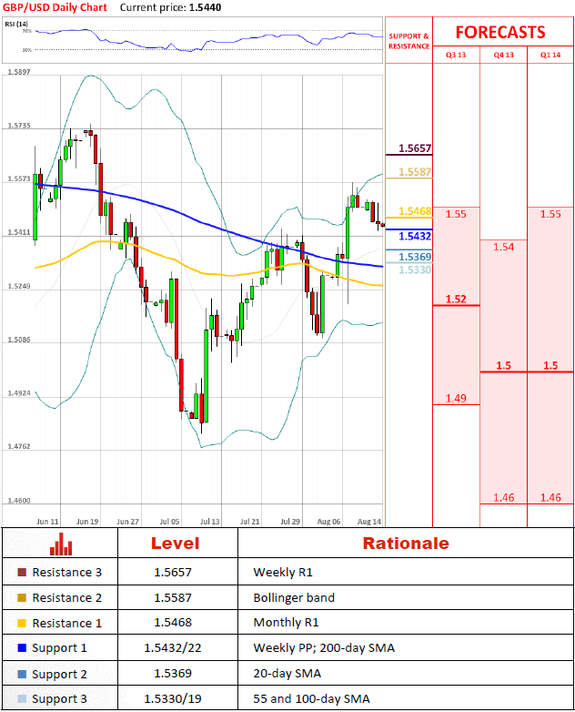 Yesterday the pair demonstrated propensity to rise. Even though the body of the previous bar is small and indicates that the Sterling depreciated, there is a long spike to the upside. Therefore we view 1.5432/23 as a temporary floor for the price action in the medium term, before the Cable challenges a key level at 1.5762/50. However, in order to arrive there, the resistance at 1.5468 needs to be overcome first.