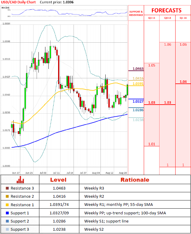 Перспективы парыАналогично ситуации начала августа, пара USD/CAD проявляет готовность расти дальше, но она также сталкивается с теми же сопротивлениями, а именно с месячной точкой разворота, которая не дала американскому доллару сохранить бычий тренд. Когда этого препятствия уже не будет существовать, то до отметки 1.0512 уже не будет каких-либо существенных сопротивлений (месячная R1), и сценарий, подразумевающийся техническими показателями, будет иметь возможность материализоваться.