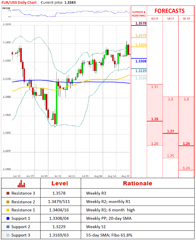 Перспективы парыПаре не удалось закрепиться над 6-месячным максимумом и на данный момент она торгуется с поддержкой от 20-дневного скользящего среднего. Несмотря на то, что краткосрочные технические индикаторы указывают на рост пары, она, похоже, исчерпала силы и должна отправиться до 1.323. Сильный бычий импульс от 20-дневного скользящего среднего (как и несколько дней назад) остаётся возможностью, однако, в очередной раз паре нужно продемонстрировать уверенное закрепление над 6-месячным максимумом, чтобы пометить на карте уровни сопротивления повыше.