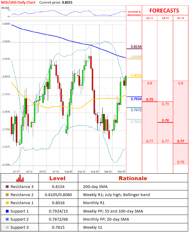 Перспективы парыНа данный момент месячная R1 доказывает, что она является значительным препядствием для валютной пары, но вероятно оно уступит, дав возможность AUD/USD попробовать 0.8105/0.8080. Торговля под последней зоной сопротивления не ожидается или должна быть ограничена до краткосрочного периода времени, так как выше там имеется 200-дневная средняя скользящая на 0.8154 и другая опасная область на 0.8200/0.8183.