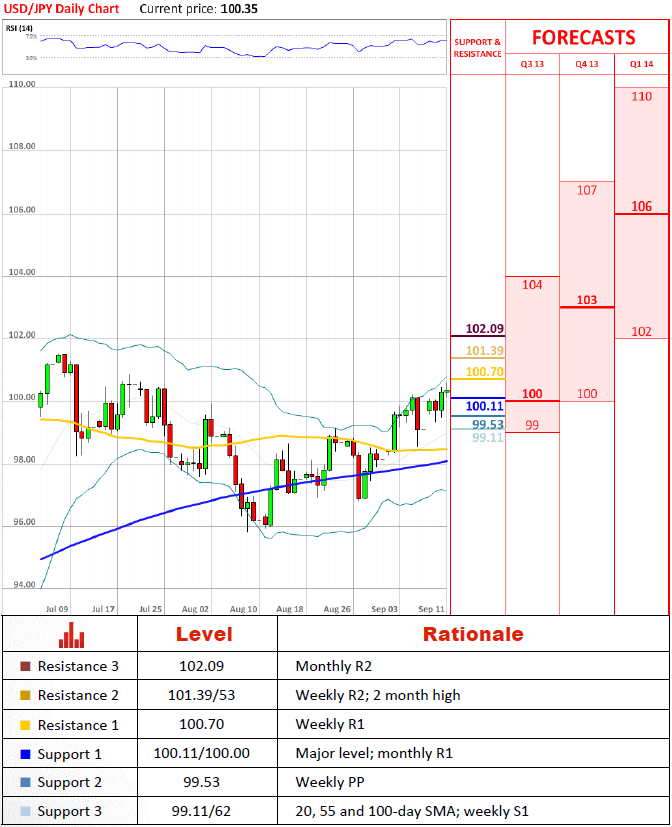 Перспективы парыПосле затяжного сражения с отметкой 100 JPY паре удалось её преодолеть. Это вызвало значительную перенасыщенность предложений на продажу и назначило отметку 101.4 промежуточной целью. Если паре удаётся пробраться выше её в кратчайшие сроки, мы можем ожидать тогда от неё проверки 103 JPY также ближайшим временем. В случае провала на двухмесячном максимуме, мы можем ожидать от неё понижение до 100 JPY. Провал здесь вернёт на карту обратно отметку 99 JPY.