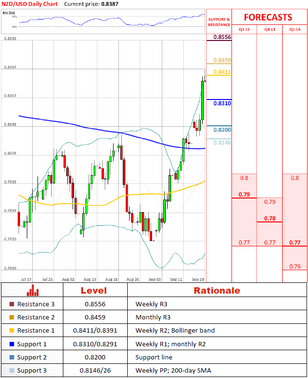 - Barclays Capital (по материалам CNBC)Перспективы парыВчерашнее восхождение нарушило несколько важных сопротивлений, включая уровни недельной R1 и месячной R2. Сегодня, с другой стороны, не имеется каких-либо сигналов к восходящему движению, так как цена, в большинстве своем, колеблется вокруг недельного уровня R2, хотя дневные и месячные технические индикаторы, в целом, продолжают давать сигналы на покупку, предполагая, что 0.8391 в ближайшем будущем также станет жертвой роста, который начался в этом сентябре.