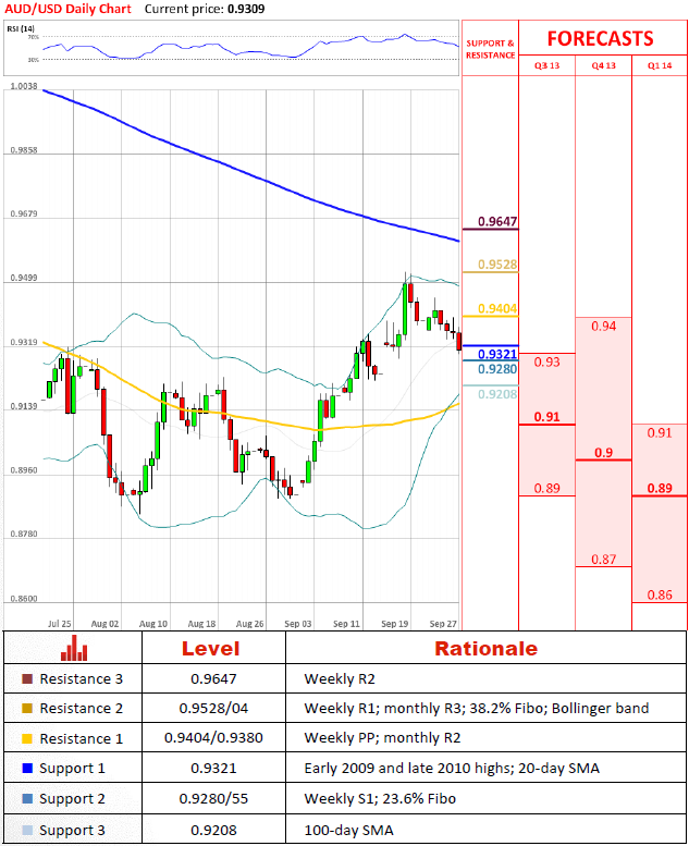 - Commonwealth Foreign Exchange (по материалам MarketWatch)Перспективы парыПродажи имеют место быть, но одна из главных поддержек на 0.9321 остается нетронутой. Как только она начнет быть под давлением, AUD/USD, скорее всего, понесет еще большие потери через 100-дневную среднюю скользящую до 0.9160/35, скопления недельной S1, месячной R1 и 55-дневной средней скользящей. Если, с другой стороны, 0.9321 остановит падение, валютная пара будет иметь шанс, чтобы попробовать 0.9528/04 еще раз.