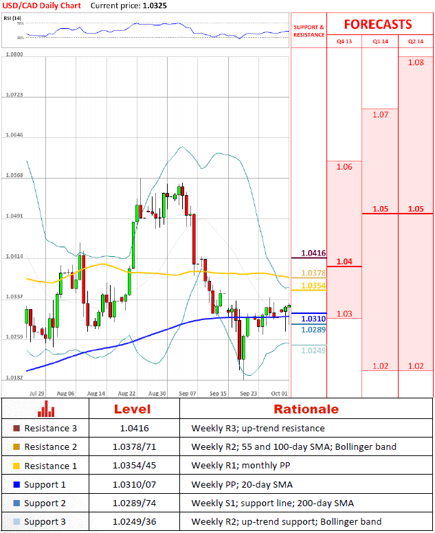 «Имелось огромное количество медвежьих ожиданий по поводу экономического роста в Канаде, и в целом он был немного более позитивный недавно. Канадский доллар имел тенденцию расти».- Societe Generale SA (по материалам Bloomberg)Перспективы парыВалютная пара медленно идет вверх, но в течение дня она может упасть до 200-дневной средней скользящей, поддержки, которая должна остаться нетронутой для того, чтобы бычий прогноз был в силе. Если это случится, USD/CAD может пройти недельную R1 и месячную точку разворота на 1.0354/45 и потенциально она достигнет 1.0378/71, зоны, где 55 и 100-дневные средние скользящие входят в недельную R2 и полосу Боллинджера.