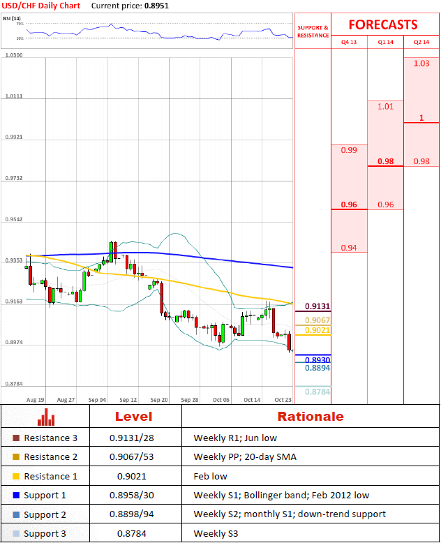 USD/CHF has fallen beneath the February low at 0.9021 and is now moving en route to the previous year's February low at 0.8930. In case the latter level is penetrated as well, the price will be expected to extend the decline until it reaches 0.8568. However, this is a low-probability scenario, most likely the pair will soon be able to find support and commence a robust recovery.