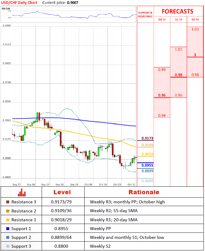 Перспективы парыПара, похоже, столкнулась с трудностями при прорыве сквозь недельное сопротивление R1/20-дневное скользящее среднее, но мы ожидаем, что пара превысит этот уровень в течении следующих нескольких дней. Это выведет недельное сопротивление R2/55-дневное скользящее среднее на горизонт. В случае неожиданного провала, мы увидим октябрьский минимум.