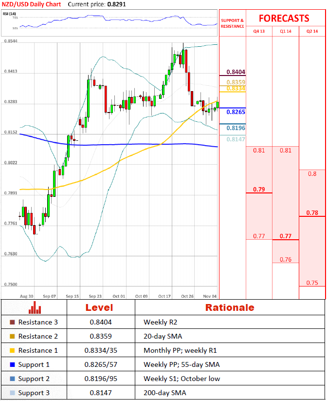 Перспективы пары Пара показывает некоторое бычье настроение, но очень вероятно, что она может остаться где-то в диапазоне между 0.8195 и 0.8335, так как это было примерно всю последнюю неделю. Если пара упадет ниже 0.8195, она должна найти поддержку у 200-дневной средней скользящей. Только падение под неё может спровоцировать дальнейший спад. Для того, чтобы начать восстановление до недавнего максимума на 85 центах, пара должна вырасти выше 20-дневной средней скользящей. Настроение трейдеров Новозеландский доллар остается одной из самых продаваемых валют на рынке. Доля медведей на рынке, однако, снизилась на 8% до 63% сегодня, тогда как 73% всех отложенных ордеров остается в пользу быков.