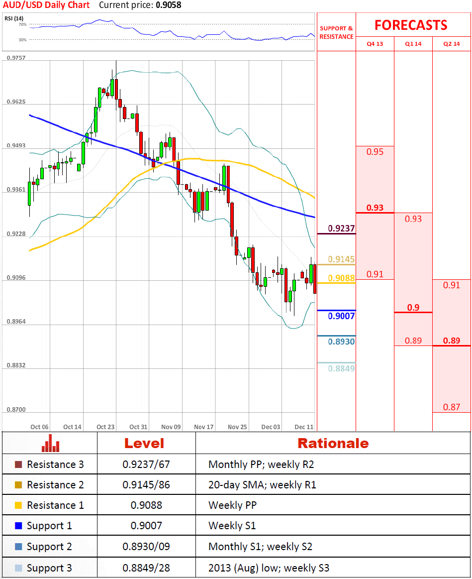 «Потенциальный поток доллара является относительно небольшим, но решение может уменьшить сомнения об открытости Австралии в привлечении иностранных инвестиций после недавнего решения наложить вето на предложение США для экспортера зерна GrainCorp.».- RBC (по материалам The Australian)Перспективы парыПара не смогла набрать импульс после отскока от недельной точки разворота вчера и на данный момент она торгуется ниже неё. Мы не уверены, спровоцирует ли это дальнейшее падение. Пара должна упасть ниже отметки 90 центов для этого. Тем не менее, это не является маловероятным, что мы увидим другой отскок от нее. Сегодняшние развития доказали, что пара встречает значительный нисходящий риск и она должна закрыться хотя бы выше 0.9237/67 для того, чтобы увеличить его.