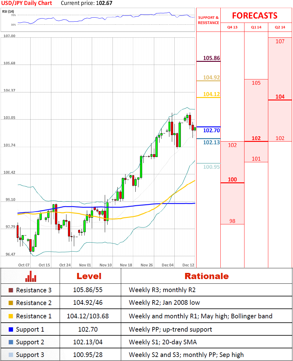 Перспективы парыПаре, похоже, удалось зацепиться за восходящую линию поддержки на 102.70 и вероятно таким образом она продолжит подъём до ближайшего значительного сопротивления на 104.12/103.68, о чём нам говорят индикаторы на суточных и месячных графиках. Если эта помеха будет преодолена, следующей целью станет 104.92 – уровень, зафиксированный в январе 2008 года.
