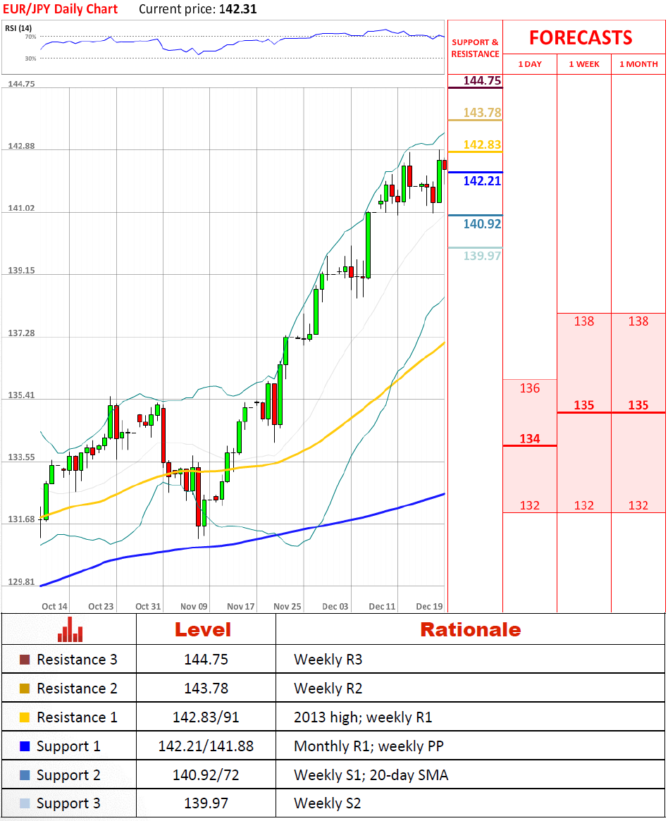 «Это последний строительный блок всего банковского союза. Мы делаем банковский сектор ответственным за свои риски и свои убытки».- Министр финансов Нидерландов (по материалам The Globe and Mail)Перспективы парыПара демонстрирует бычьи настроения и достигла нового максимума 2013 года вчера. Она сделала шаг назад сегодня, но мы ожидаем, что бычий тренд сохранится в средне и долгосрочной перспективе. В краткосрочной перспективе она может немного упасть, но не должна этого сделать ниже области 140.92/72. В случае, если она неожиданно это сделает, это может породить распродажи до 139 иен, но это кажется достаточно маловероятным на данный момент, так как мы ожидаем, что пара будет торговаться в боковом тренде в краткосрочном периоде.