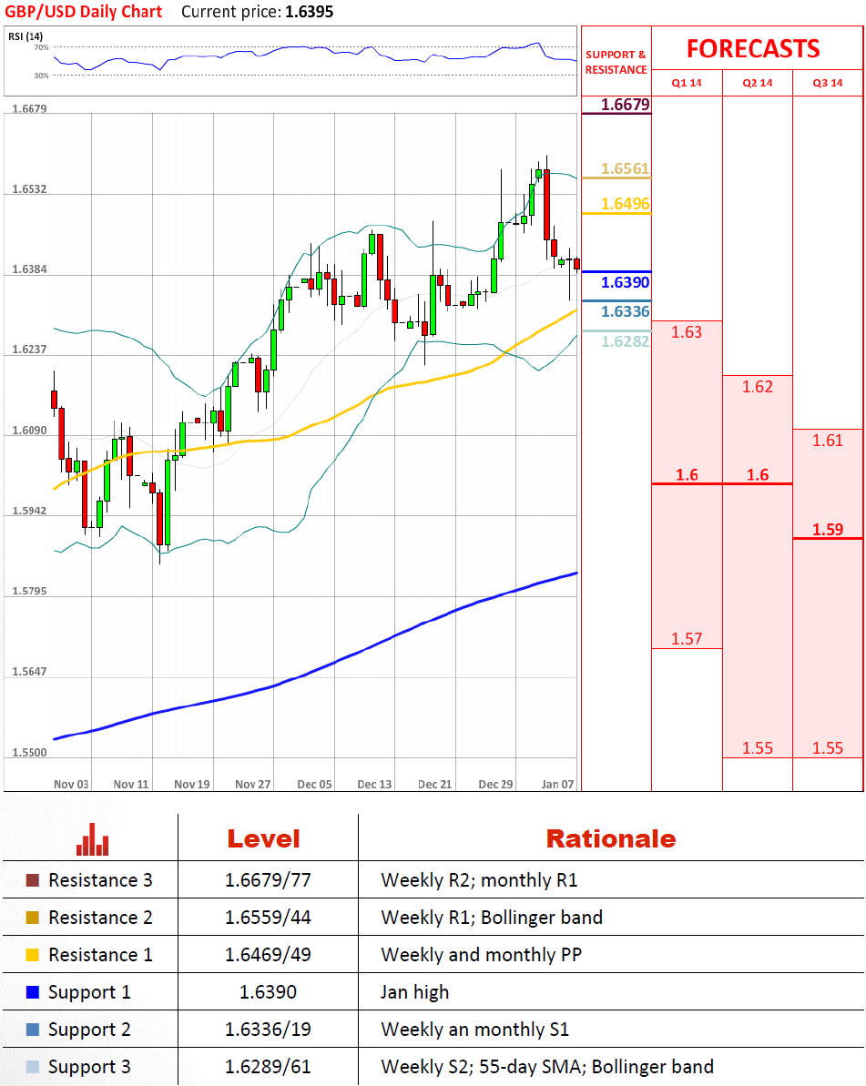 The January high manages to keep the rate away from lower supports, such as the one at 1.6336/19, formed by the weekly and monthly S1 levels. But at the same time it fails to commence a recovery. If GBP/USD does not climb over the resistance at 1.6469/49 in the nearest future, we would rather focus on the 55 and 100-day SMAs instead of 2011 high at 1.6752/45.