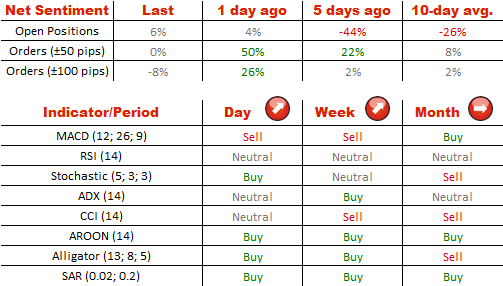 The British Pound carries on gaining popularity, albeit slowly,—the portion of long on GBP/USD positions added a percentage point and now amounts to 53%. The distribution between the buy and sell orders is much less stable—the share of the former plunged from 63% to 46%.