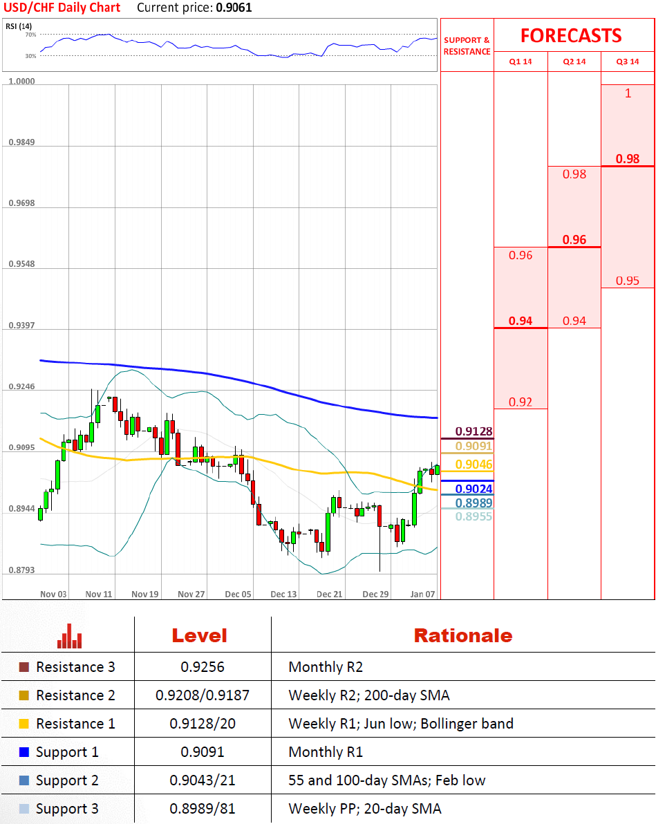 USD/CHF has successfully defeated the monthly R1 at 0.9091 and is currently trying to mount yet another obstacle at 0.9128/20, being that this is the level of the June low and the weekly R1. If the buying pressure does not subside here, which should be the case despite the bearish weekly technicals, the rate will be expected to move further north, where it is sure to encounter the 200-day SMA.