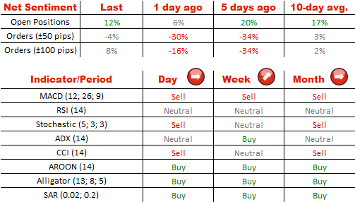 Bulls are trying to recover further. At the moment they account for 56%, 3% more than yesterday, of market participants. In addition, share of pending long orders increased by 13%, till 48%, in 50 pip range and by 12%, till 54%, in 100 pip range