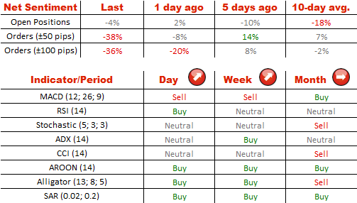 The difference between the proponents and opponents of a rally stays insignificant. At the moment of writing 48% of positions are long and 52% are short, meaning the overall sentiment is presently neutral. Meanwhile, there are now considerably more traders willing to sell the Sterling (68%) against the buck than before (60%).
