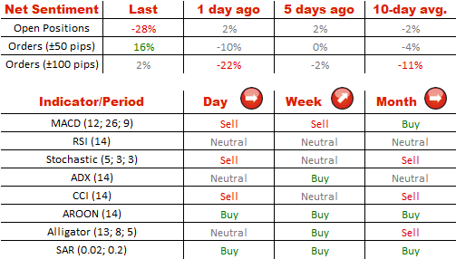 Вследствие последнего ралли фунта, большое количество участников рынка продало британский фунт, веря, что валютная пара уже достигла своего высшего уровня - на данный момент 64% позиций являются короткими. Тем не менее, в то же время доля ордеров, выставленных на продажу, вместо увеличения, сократилась с 61% до 49%.